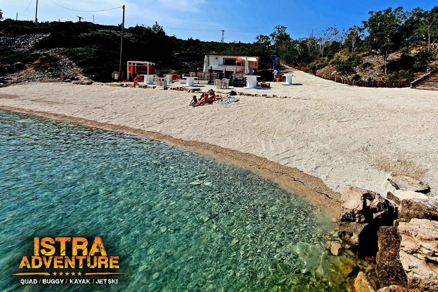 'Buggy Family Safari: Seaside tour' in place BARBAN (near PULA) lasting 4 hours will take you to several beautiful viewpoints overlooking the Raška Bay. Arriving at the beach is followed by a swim in the sea or a drink at the beach bar, but for those who want extra adrenaline and enjoy marine activities, in this variant on our website you can book a combined trip BUGGY FAMILY + JET SKI SAFARI, which is also our BEST-SELLING PREMIUM trip you can check it on our private web site.
